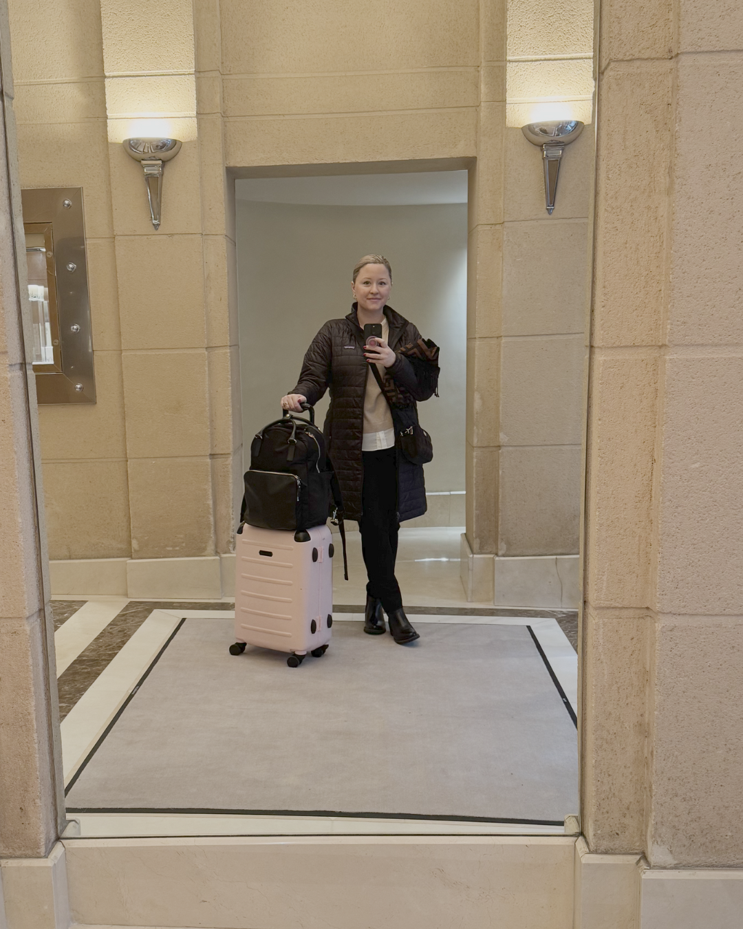 When it was my turn, the employee kindly told me it might take up to four days to arrive since I lived beyond a 40-mile radius of the airport. Not ideal. My head immediately went to: What do I need to replace this weekend?—especially since I had packed most of my go-to work clothes, makeup, and curling iron.